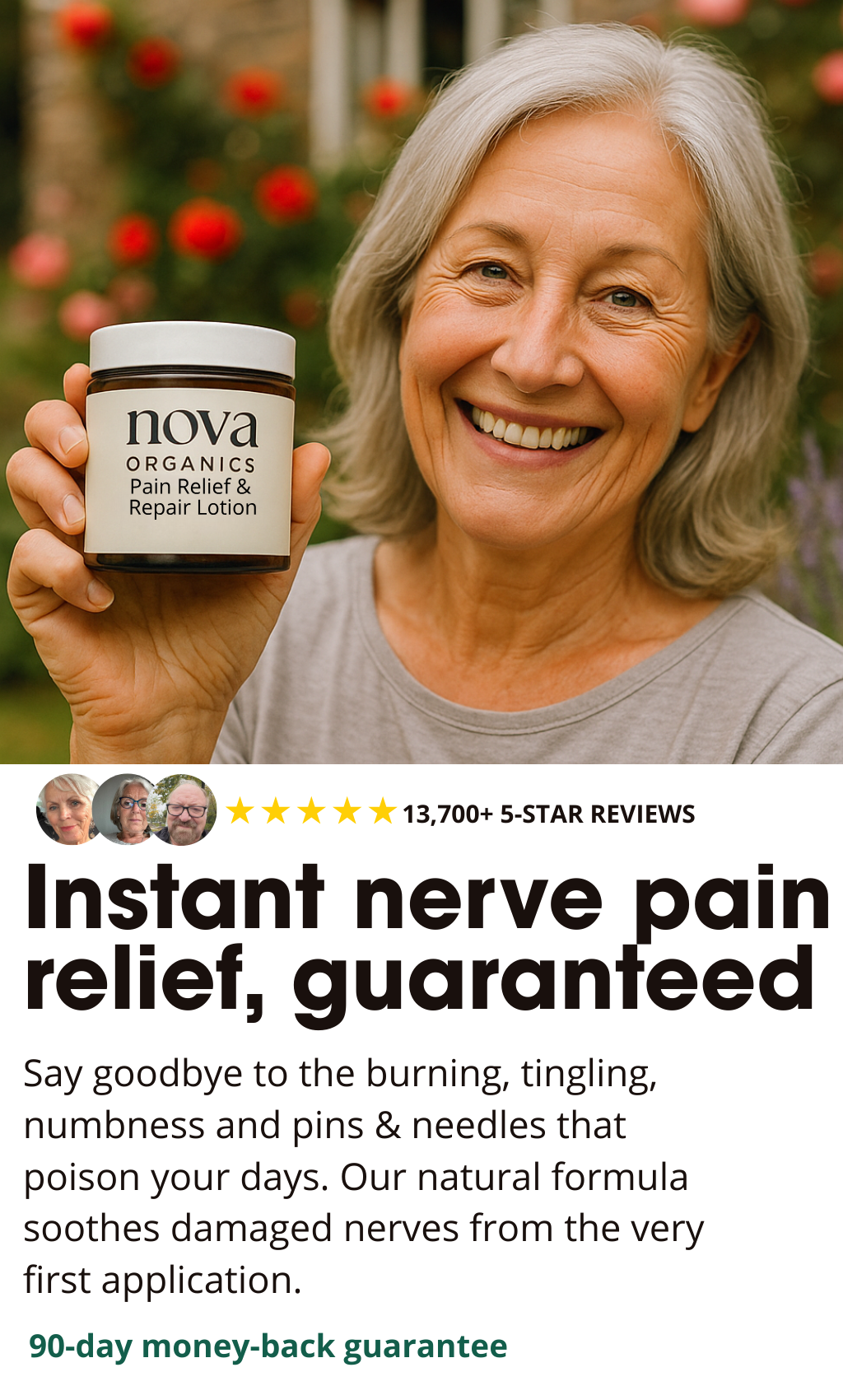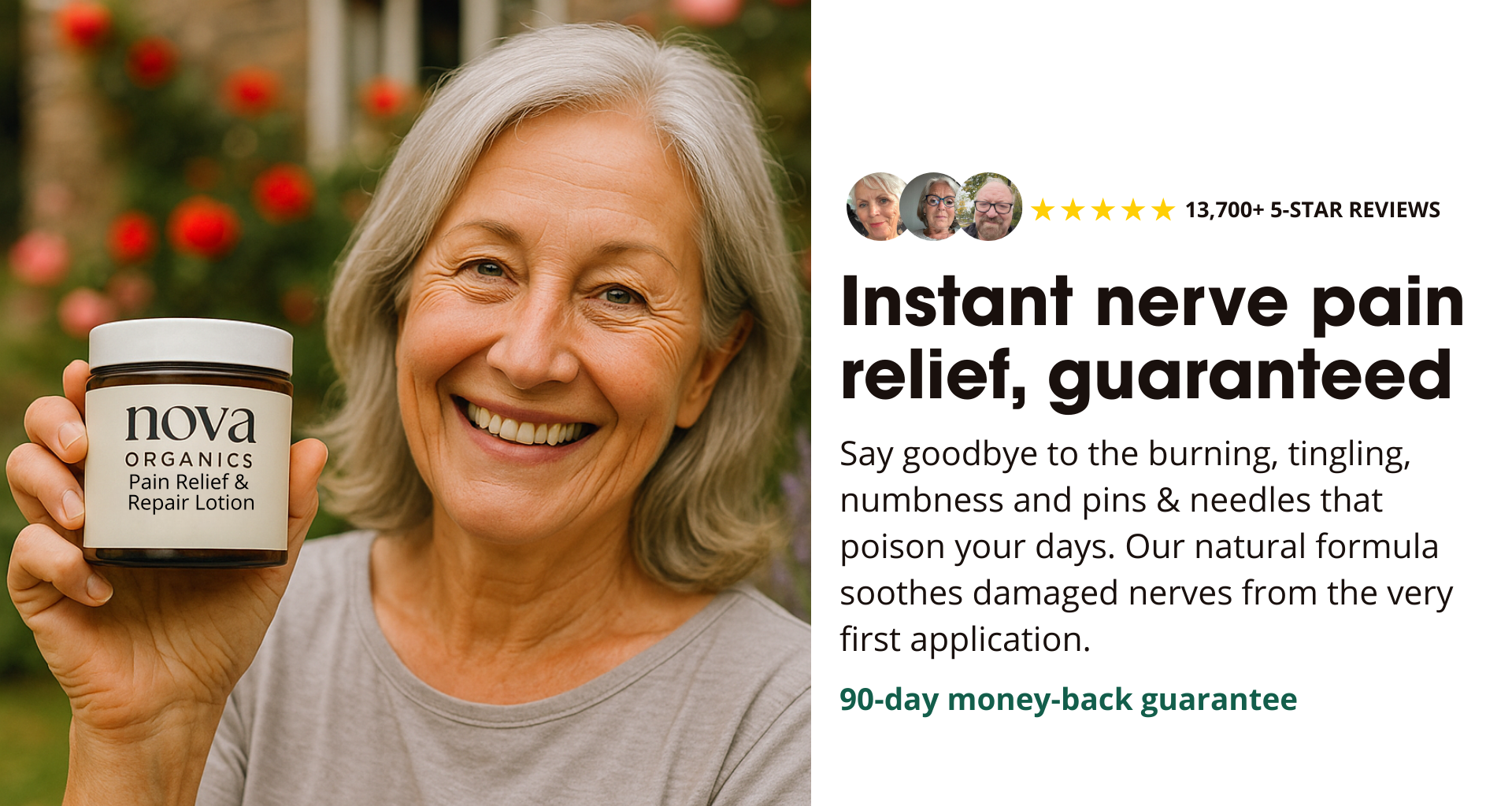 But if for any reason you're not entirely satisfied, we'll put it right straightaway.Try Nova Pain Relief & Repair Lotion completely risk-free today.